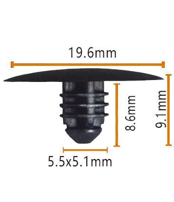 Верхівка цього гвинта призначена для плоского, діаметром 19,6 мм і довжиною 8,6 мм, забезпечуючи близьке пристосування з усіма частинами транспортного засобу. Піднята частина посередині діаметром 5,5 мм і висотою 5,1 мм. Ця унікальна конструкція не тільки посилює ефект затягування гвинта, але й робить процес встановлення більш плавним. Дно - це плоска кругла основа з діаметром 9,1 мм, що забезпечує стабільну опору гвинта. Загальний розмір чітко позначений, що зручно для вас швидко ідентифікувати та вибрати під час використання.