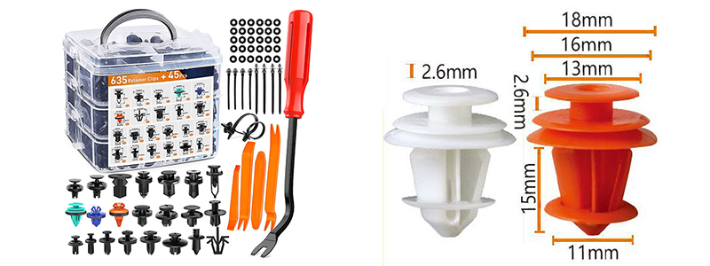 Ці кліпи широко використовуються у внутрішній частині автомобілів Mercedes-Benz та у фіксації електронних модулів. Їх часто використовують для легких компонентів та деталей, які потрібно швидко встановити або зняти, наприклад, центральну консоль, панелі обробки дверей, регулювання регулювання сидінь тощо.