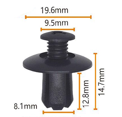 Цей універсальний кліп автомобілів є хорошим продавцем, розмір точний до 0,1 мм, щоб частини вашого автомобіля могли щільно підходити, ширина 19,6 мм, висота 9,5 мм.